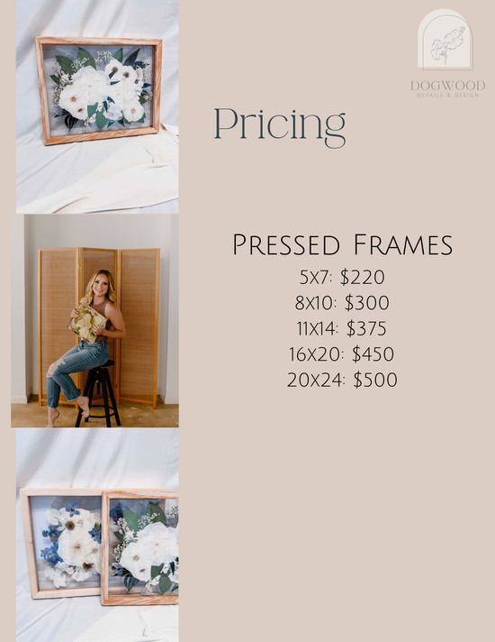 For 2026 I will be taking a limited amount of wedding orders per month. Pressed frames will be the only offering for 2026. Thank you for understanding!